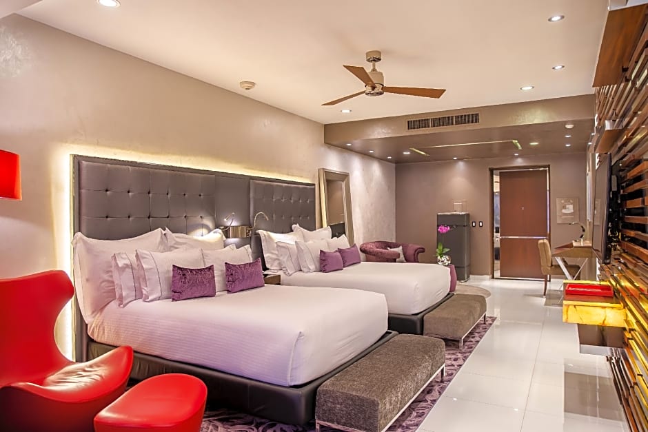 2 BDR ULTRA SUITE SOUTH is 2121 square feet and includes either 2 queen-size beds 150-154 width or a king-size bed 150-183 width plus balcony, cable tv, and hairdryer.